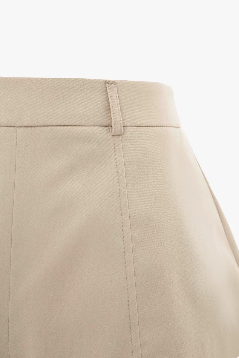 Короткие шорты из костюмной ткани. Модель с эффектом многослойности. Шорты застегиваются на скрытую молнию сзади. На подкладке