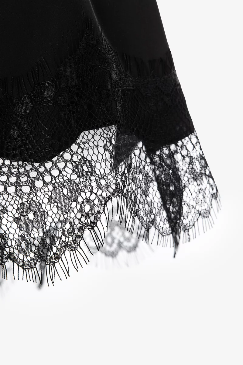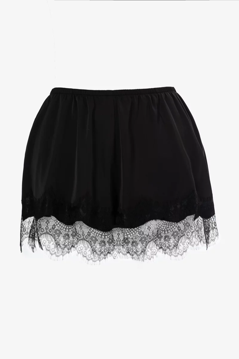 Короткие шорты с кружевом и тонким эластичным поясом-резинкой, что обеспечивает комфортную посадку. Выполнено из искусственного шелка. Модель станет прекрасной базой для создания стильных вечерних и повседневных образов