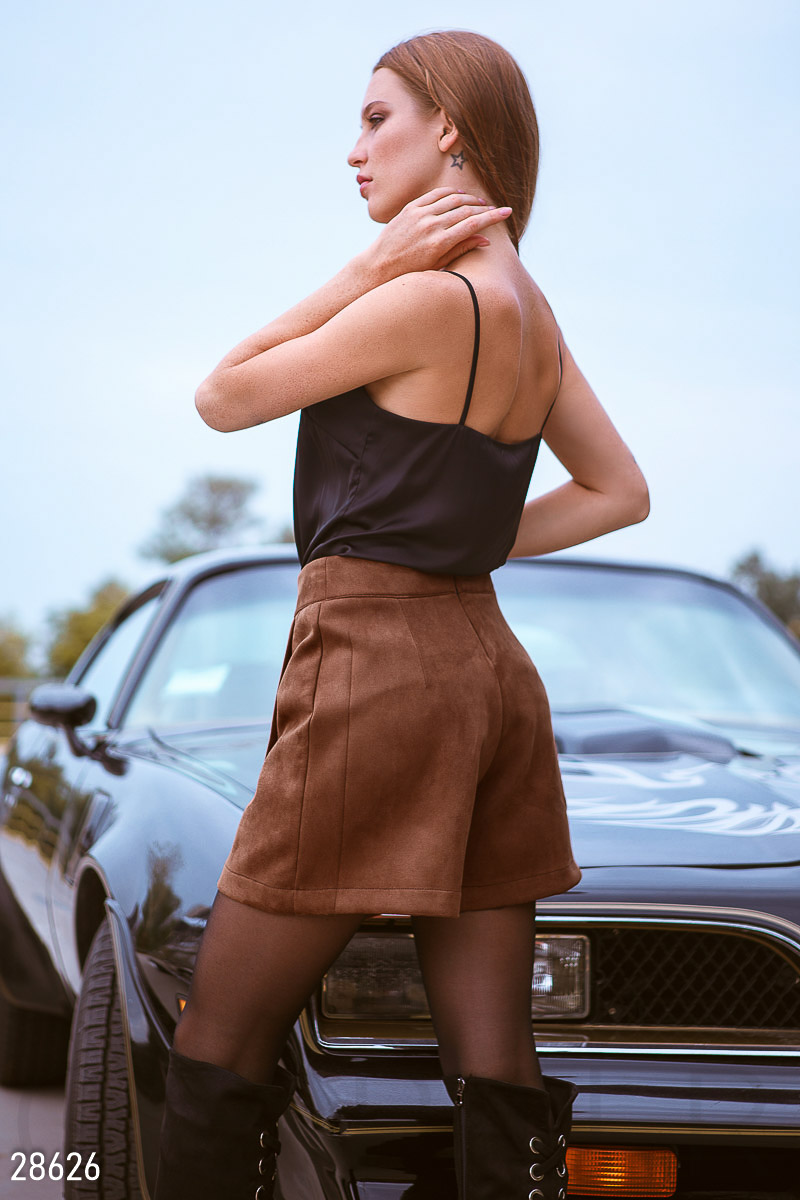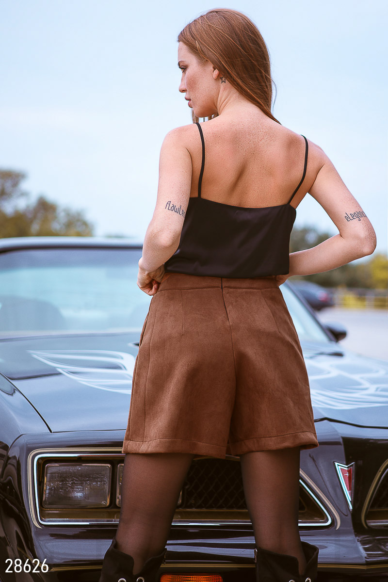 Стильные женские шорты-юбка средней посадки, выполненные из мягкой эко-замши.