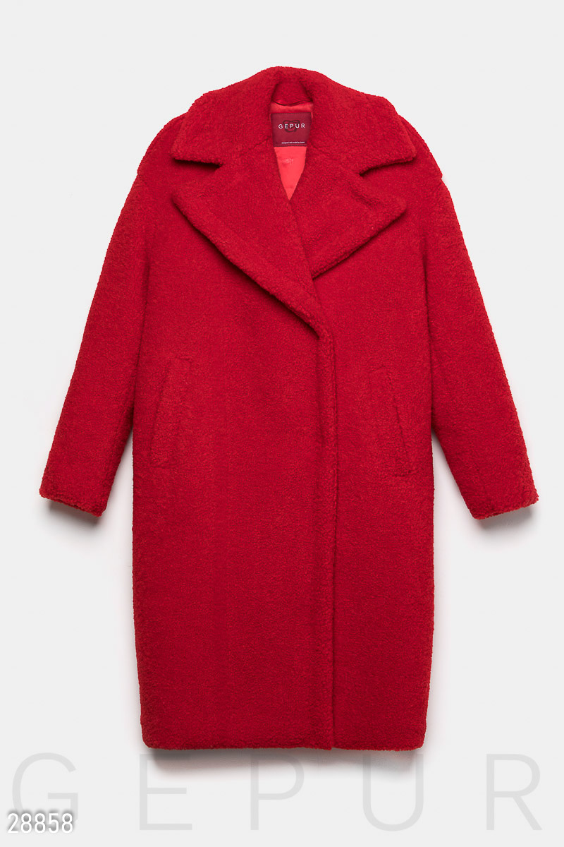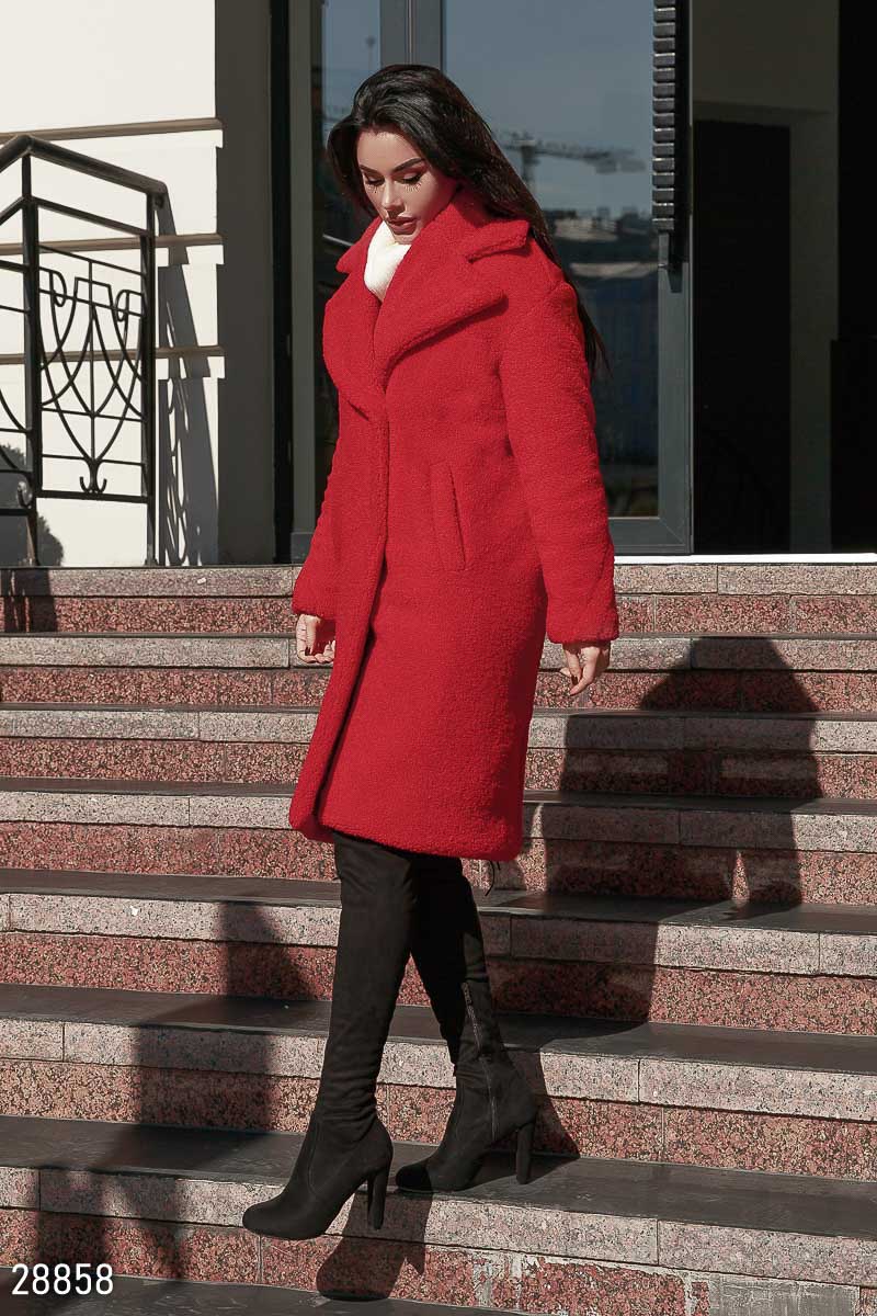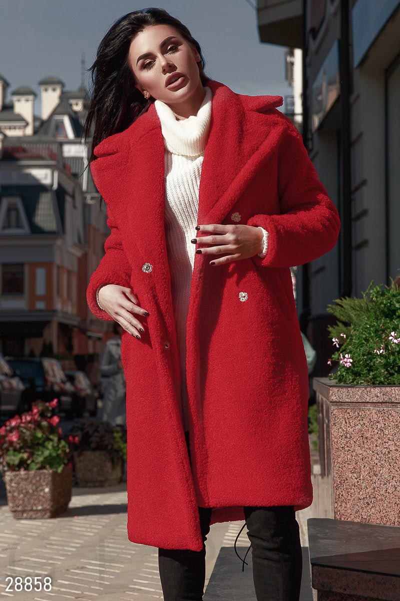 Трендовое зимнее пальто Teddy Bear от дизайнеров Gepur: объемный воротник с лацканами, два вместительных кармана по бокам и потайная застежка на фигурные кнопки.