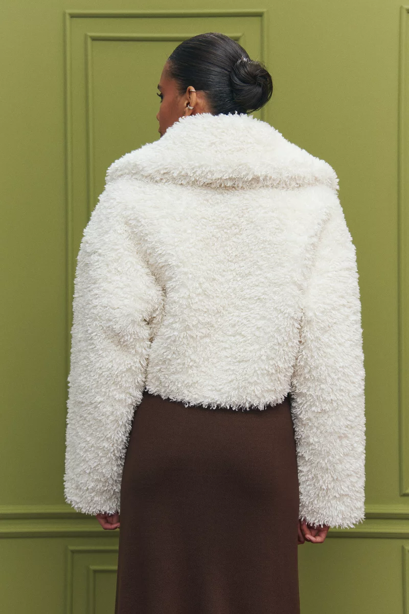 Короткое пальто из мягкого, объемного искусственного меха дополнит твои стильные образы. Модель с прямым длинным рукавом и воротником с лацканами. Застёгивается на крючки. На подкладке