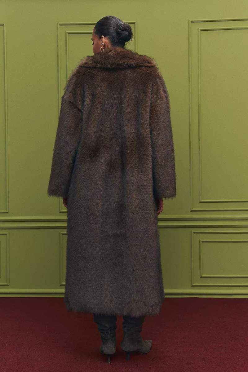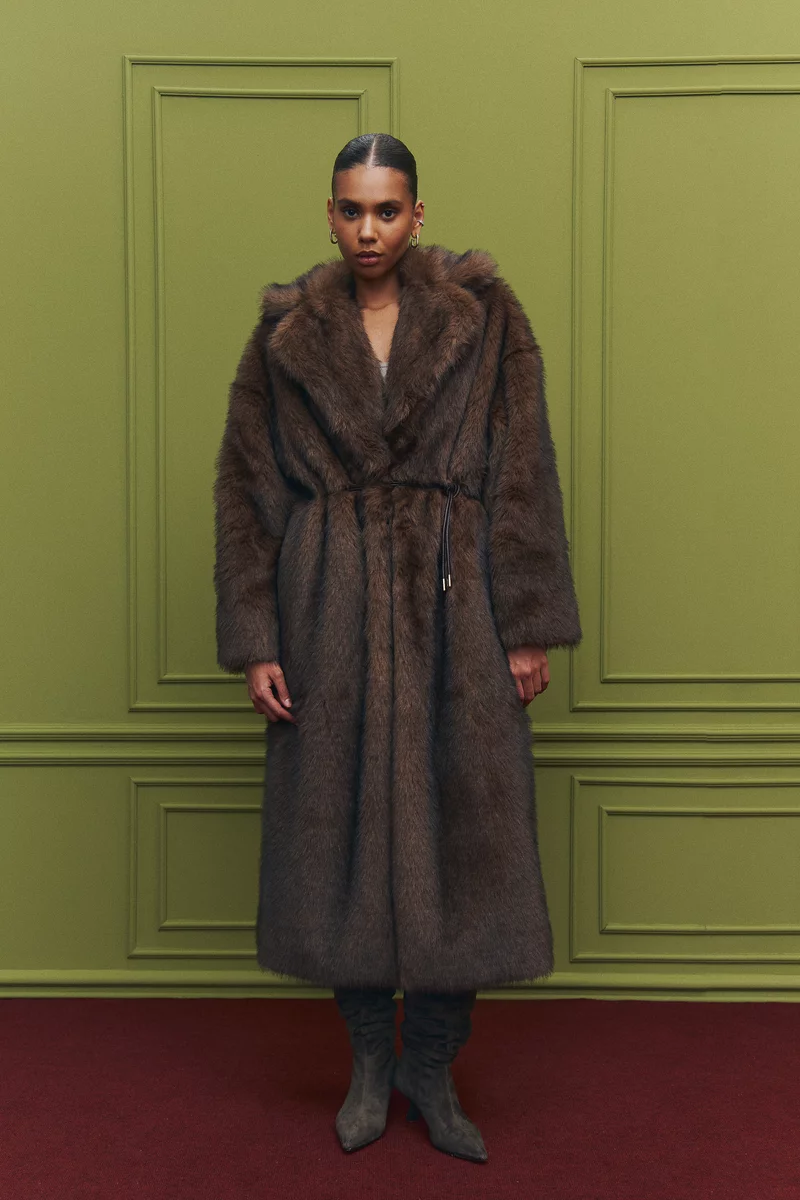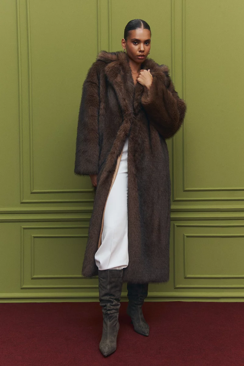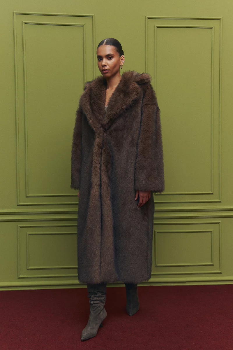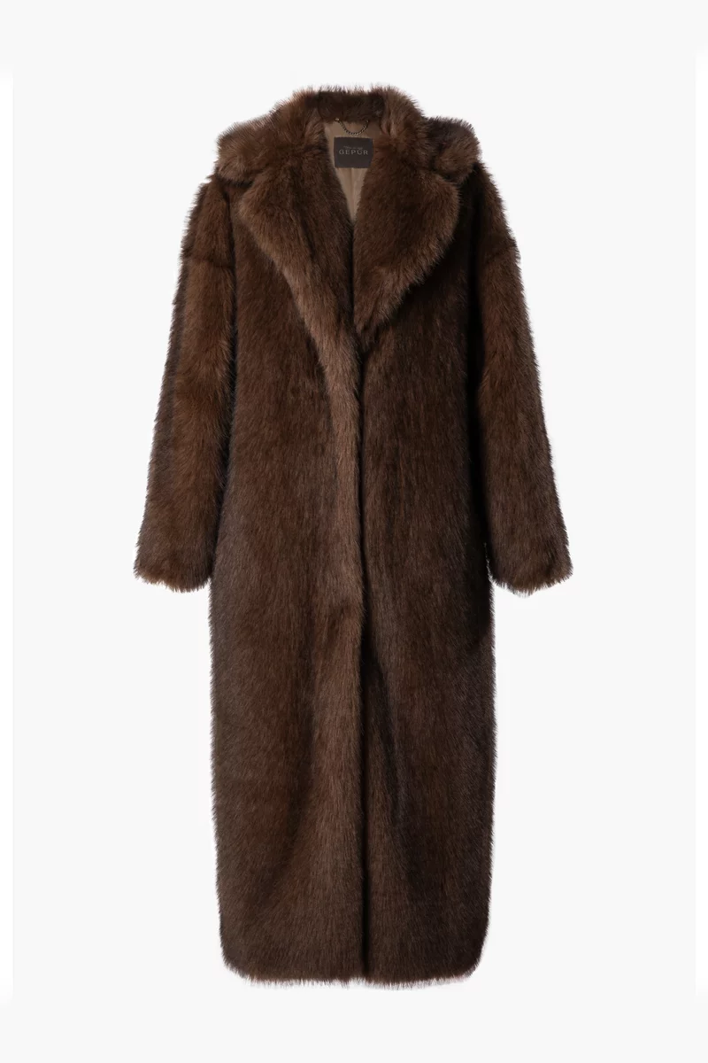 Длинное пальто из мягкого, объемного искусственного меха дополнит твои стильные образы. Модель с прямым длинным рукавом и воротником с лацканами. Застёгивается на крючки. На подкладке