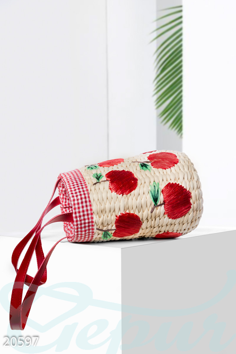 ОЧень клевая сумочка! Для лета и пляжа то что надо. Внутри подклад на затяжечках, ничего не выпадет, не видно будет, что внутри. Пришла правда очень помятая. Поставила внутрь 5 литровую пластиковую бутылку из под воды (тут понятен размер сумки)...Детальнее