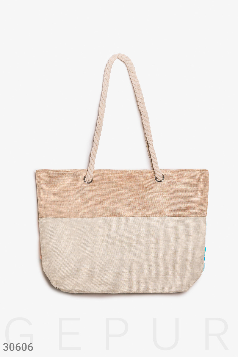 Тематическая летняя сумка из холщовой ткани на подкладе (полиэстер), с практичными ручками-канатами, одним вместительным отделением с боковым карманом, украшенная переливающейся крупной голографической пайеткой.