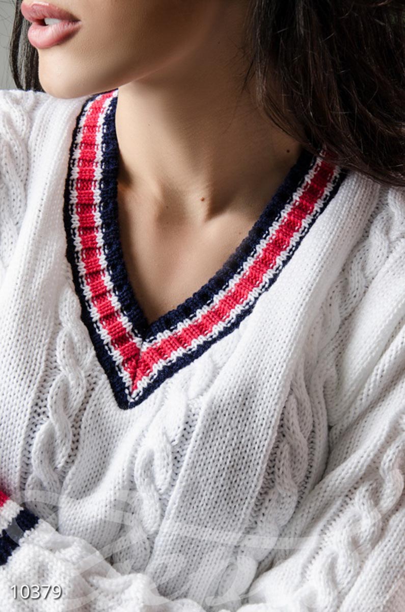Свитер красивый. Брала на ОГ 106, сидит отлично