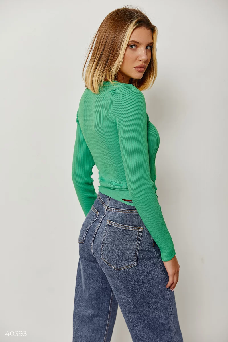 Базовый лонгслив необходим в гардеробе каждой девушке. Модель выполнена из трикотажного материала, с глубоким круглым вырезом, длинными рукавами. Лонгслив стилизован разрезами на талии по бокам, в которых предусмотрен регулятор длины. Институт цвета Pantone выделяет в сезоне FW 2021/22 оттенки максимально приближенные к природе, одним из которых является насыщенный зеленый.