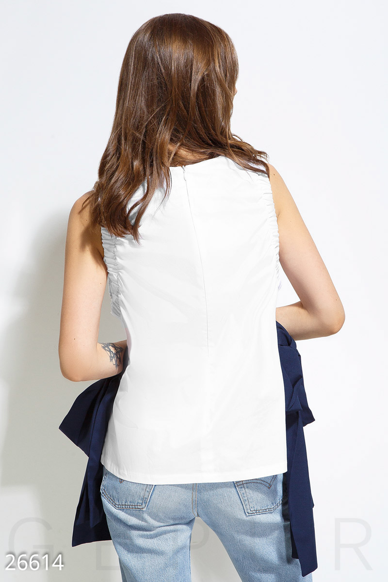 Летний топ из органического хлопка с широкой эластичной проймой и контрастными завязками по бокам.