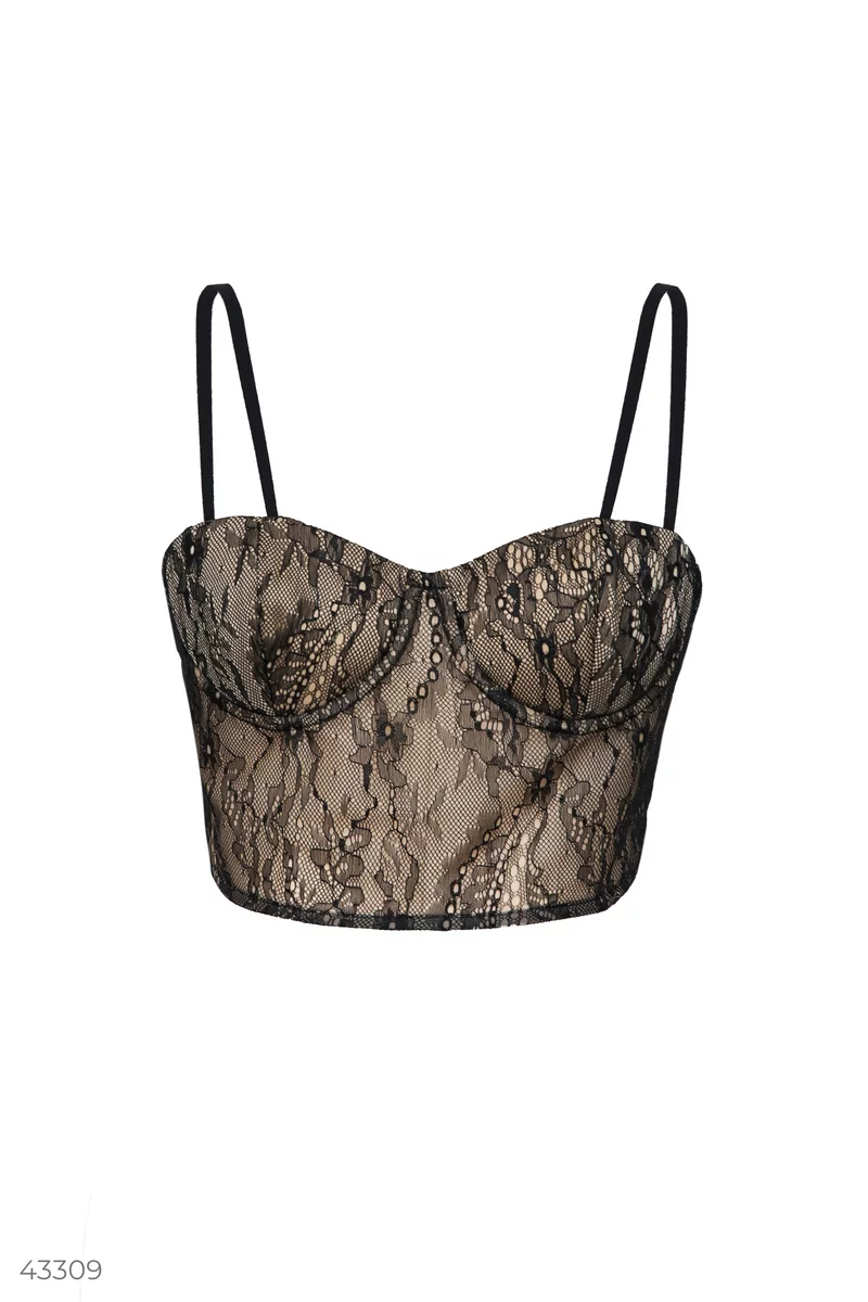 Черный топ-бюстье с кружевом