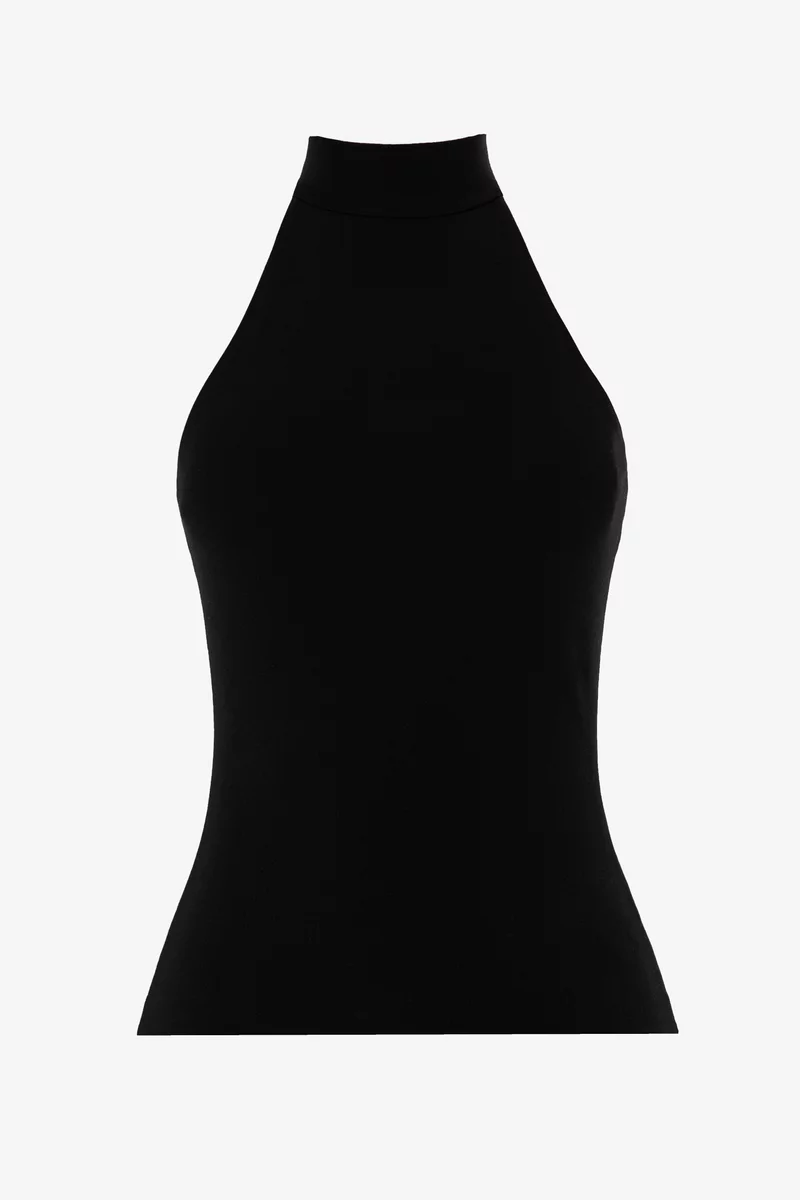 Топ из приятного к телу трикотажа. Модель облегающего кроя с воротником-стойкой