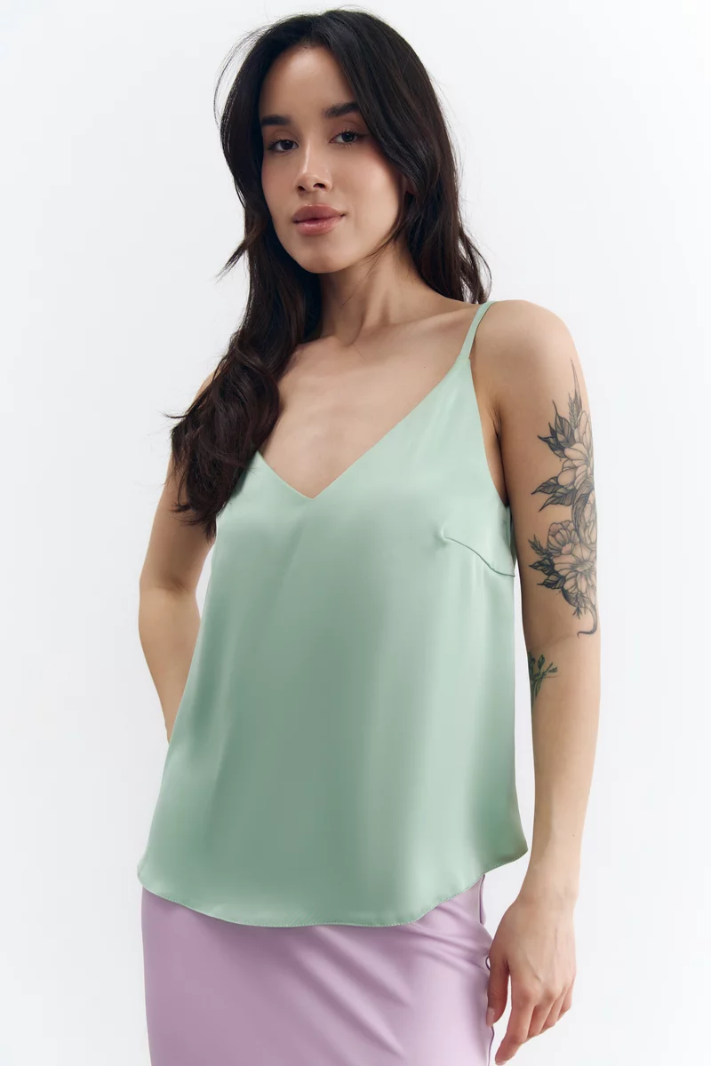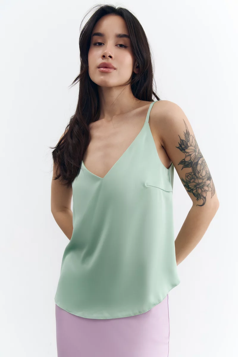 Сатиновый топ на тонких бретелях в мятном оттенке