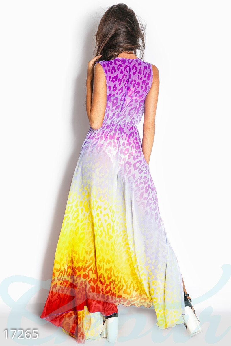 Пляжная туника с удлиненной спинкой, выполненная из воздушного шифона с анималистичным принтом. Модель дополнена завязками и эластичной вставкой на поясе.