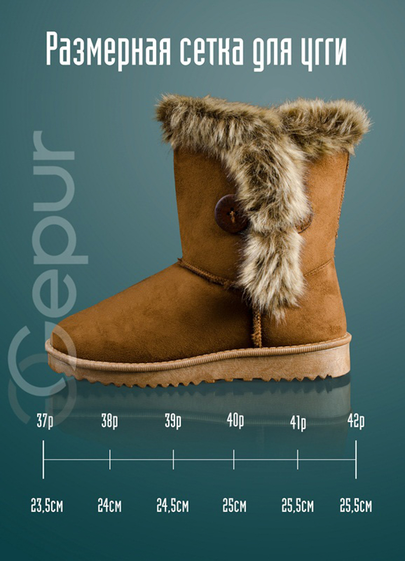 Внимание! Угги 41 и 42 размеры совершенно идентичны, по стельке 25,5см, поэтому Вы получаете без предупреждения любой из этих размеров.