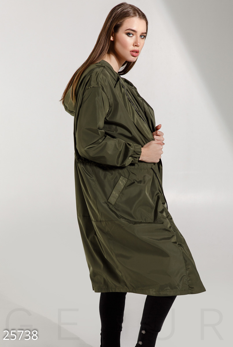 Итак это модель оверсайз - она должна быть свободной везде. Но если любите чтоб сидело четко по плечам и рукам - берите на размер меньше, как я. В реальности плащ выглядит круче. Дорогая плащевая ткань и от ветра и от дождя защитит, талия легко...Детальнее