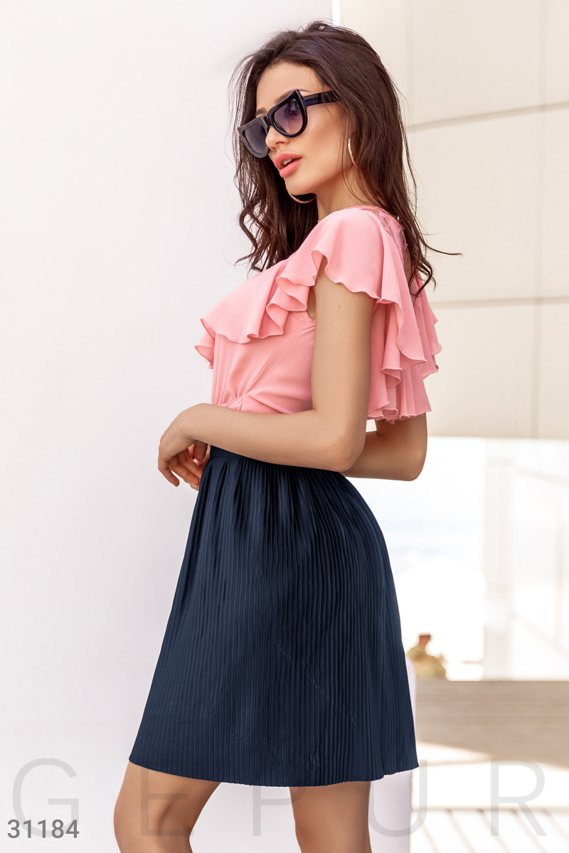 Короткая плиссированная юбка средней посадки на широком поясе с эластичной вставкой сзади, созданная дизайнерами Gepur.