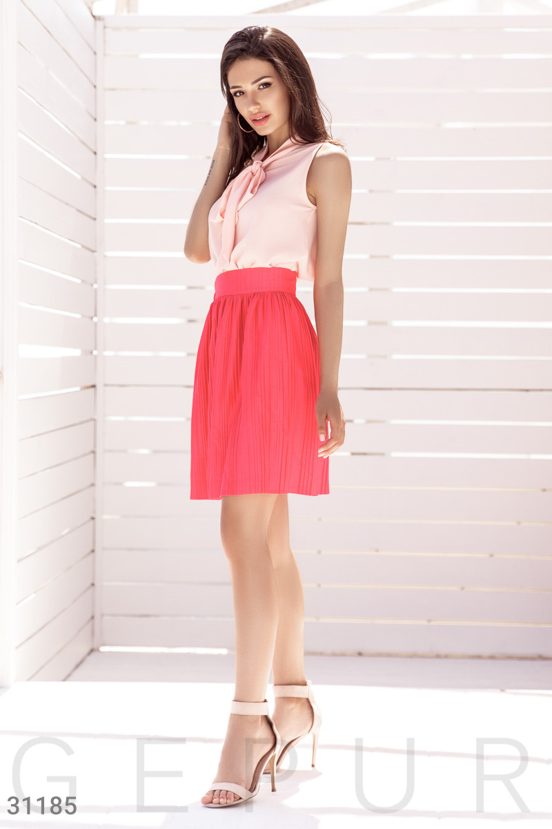 Короткая плиссированная юбка средней посадки на широком поясе с эластичной вставкой сзади, созданная дизайнерами Gepur.