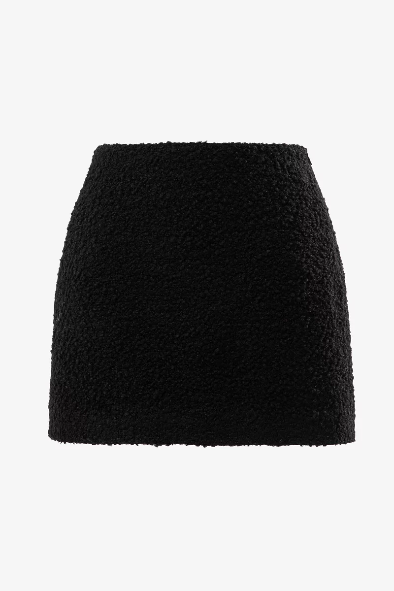 Базовая юбка мини выполнена из букле с добавлением шерсти. Плотная и очень комфортная ткань, что формирует идеальный силуэт, держит форму, придает образу структурированности и дарит тепло в прохладные дни