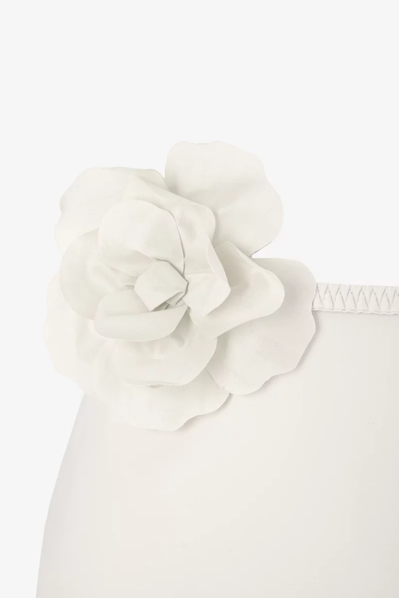 Юбка мини из плотного сатина с гладкой фактурой. Подчеркнутая высокая талия и акцентный съемный пояс с цветком моделируют силуэт. Юбка застегивается на скрытую молнию сбоку. На подкладке