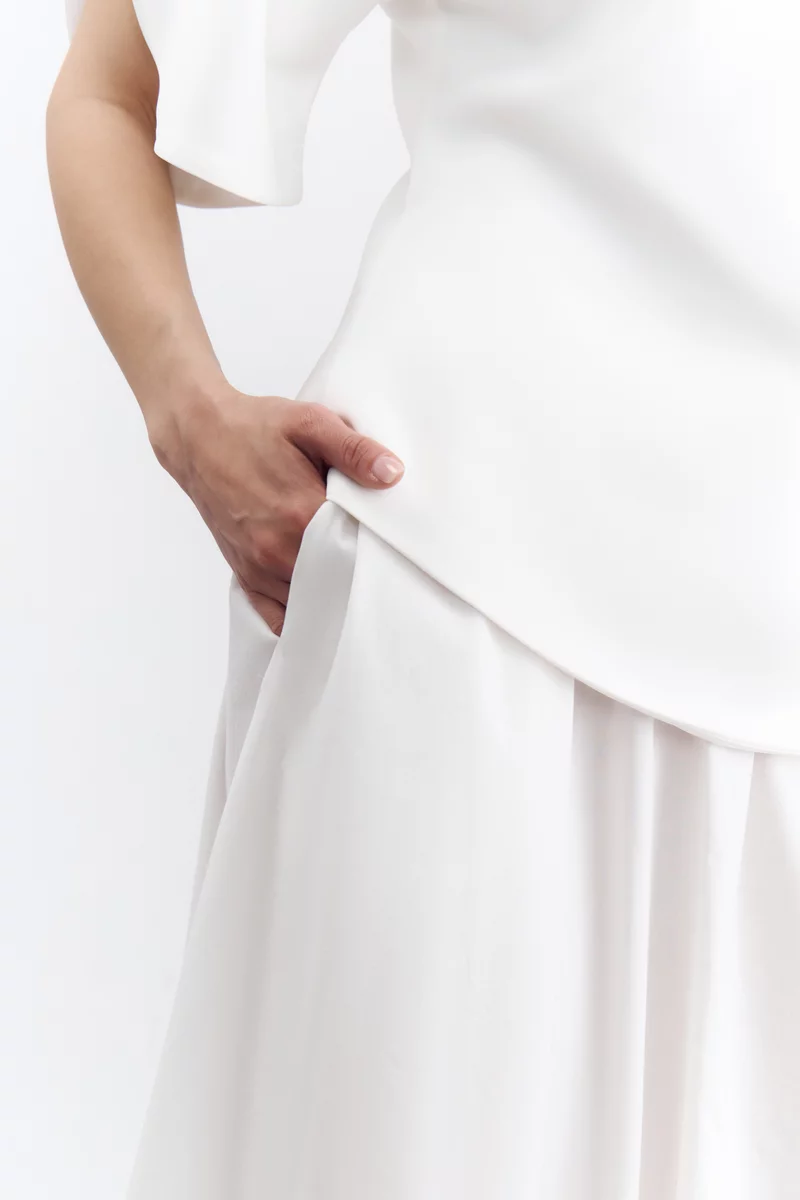 Юбка макси из 100% хлопка. Модель расклешенного кроя с высокой талией, есть боковые карманы. Застёгивается на скрытую молнию сзади