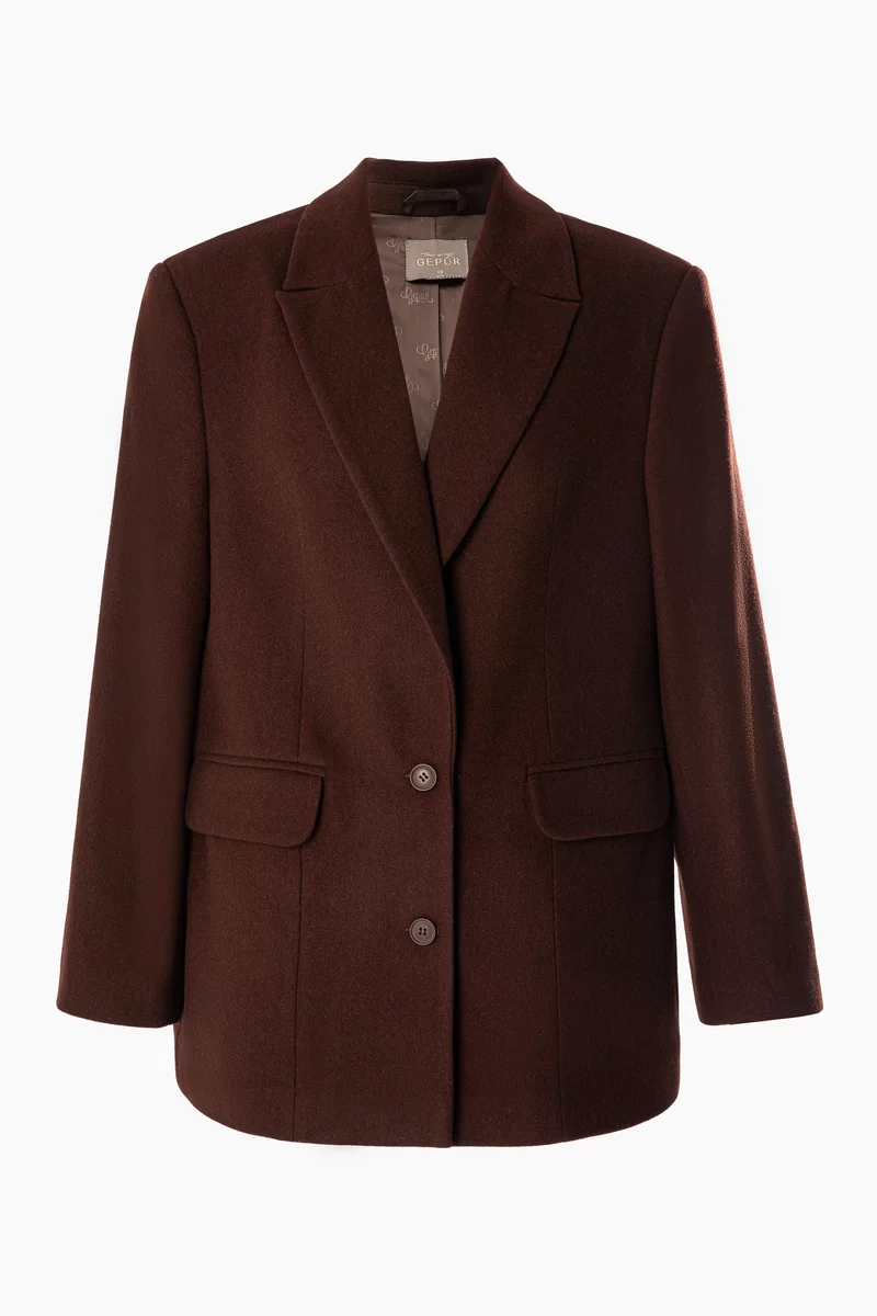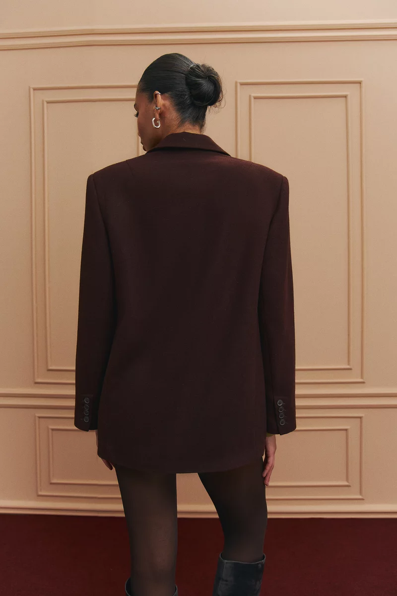 Коричневый однобортный жакет-пальто оверсайз с добавлением шерсти