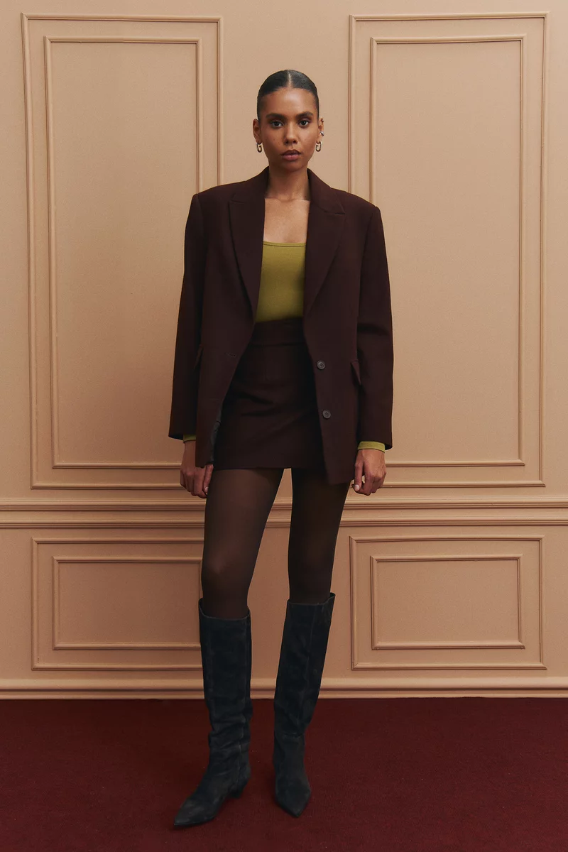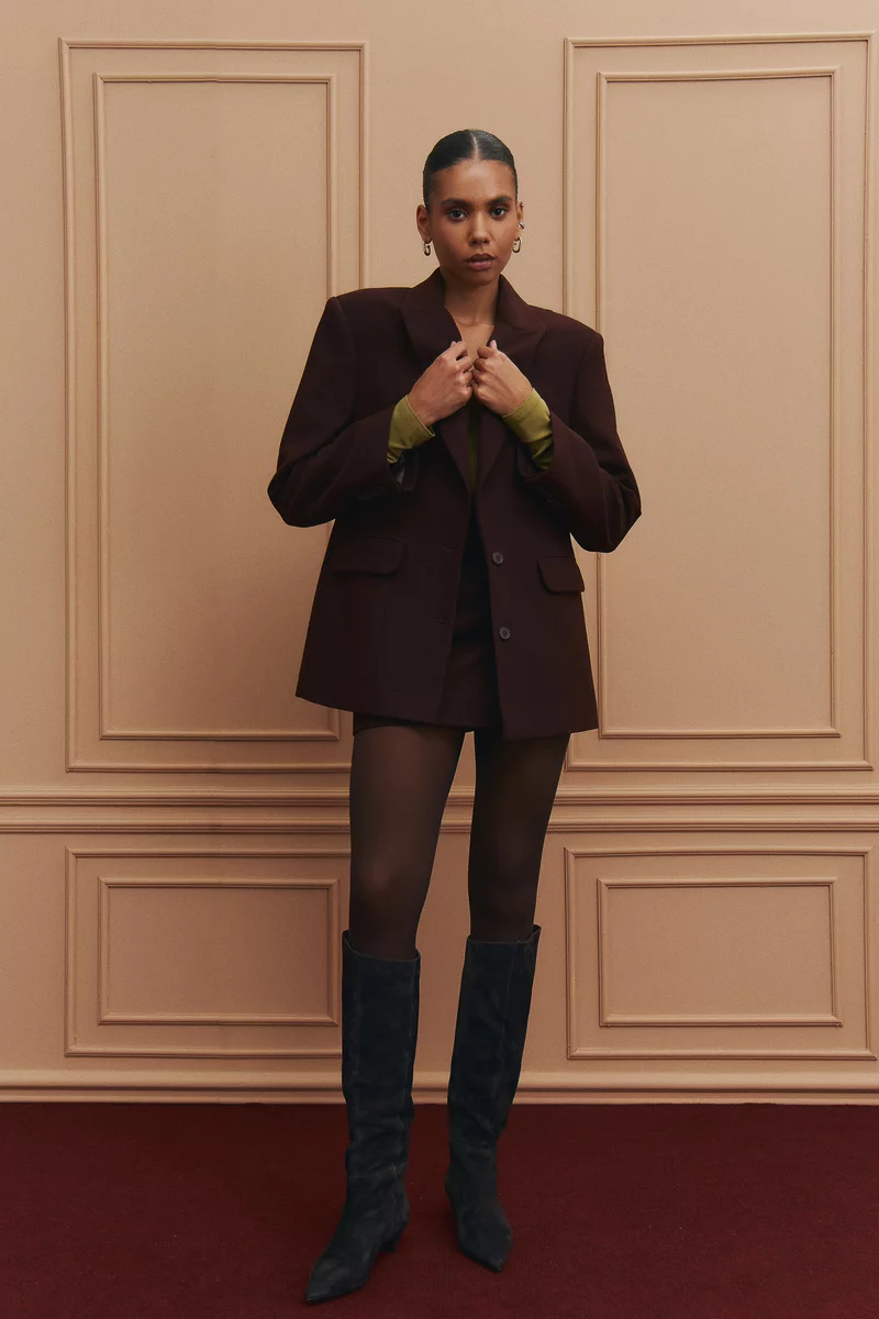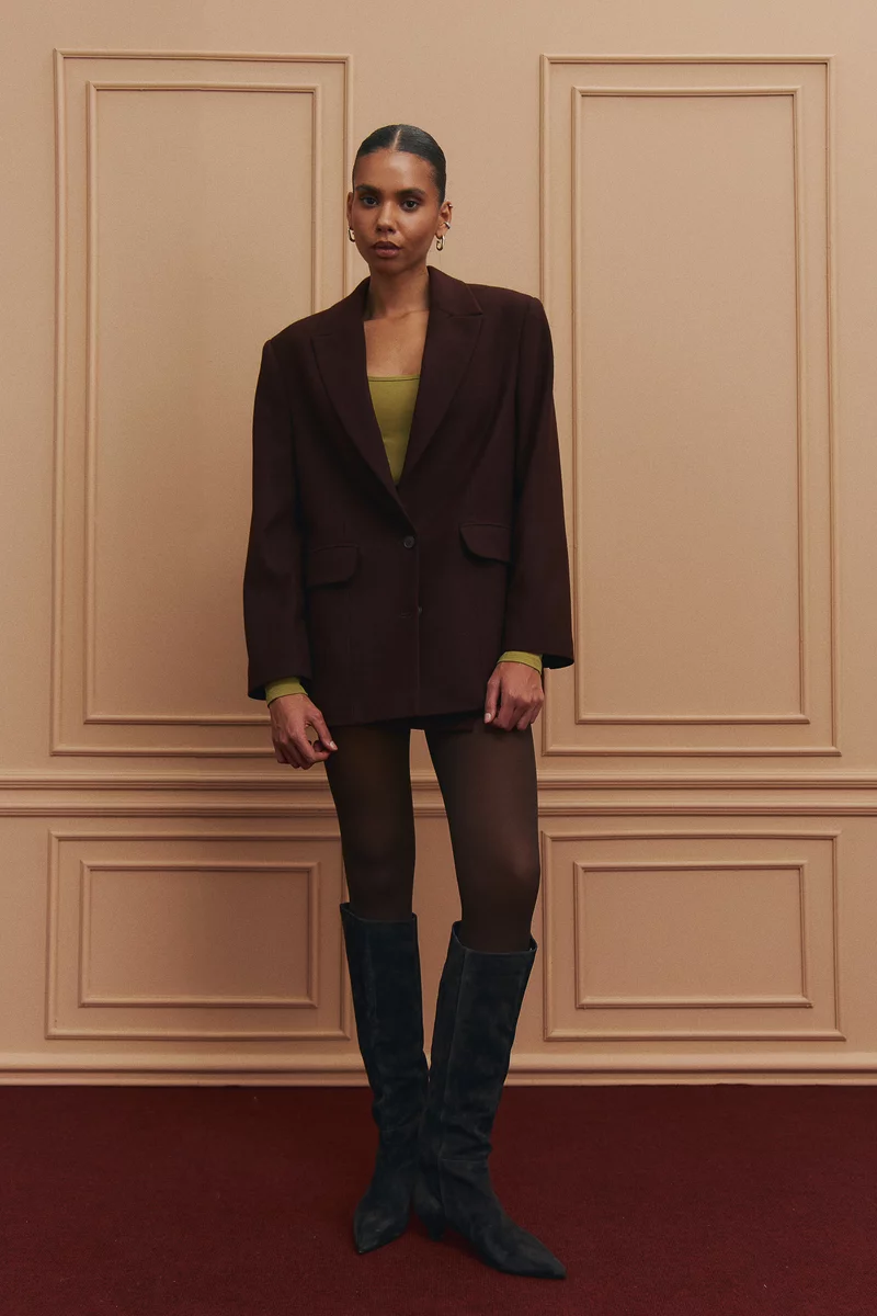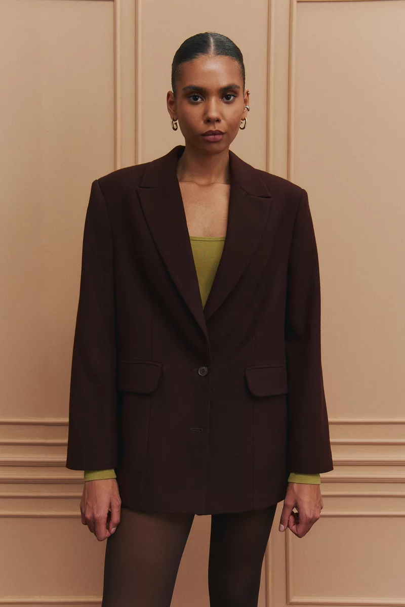 Базовый однобортный жакет-пальто оверсайз выполнен из пальто с добавлением шерсти. Плотная и очень комфортная ткань, что формирует идеальный силуэт, держит форму, придает образу структурированности и дарит тепло в прохладные дни