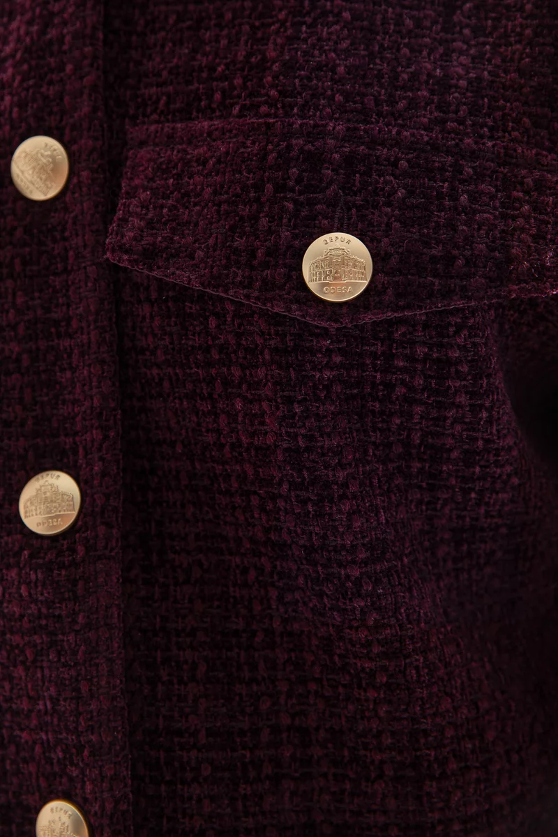 Однобортный жакет из твида с добавлением шерсти в винном оттенке
