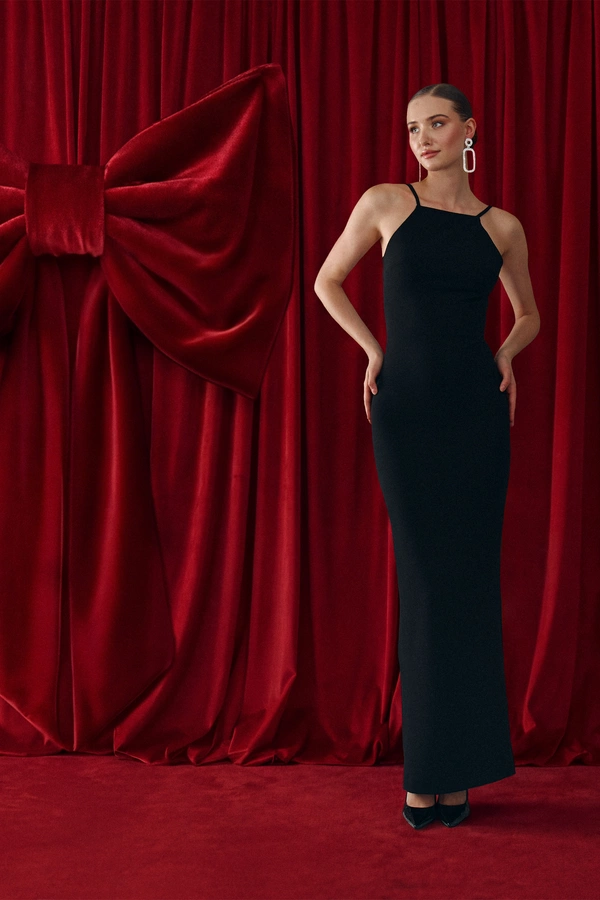 Елеганта чорна maxi сукня & сріблясті сережки з камінням