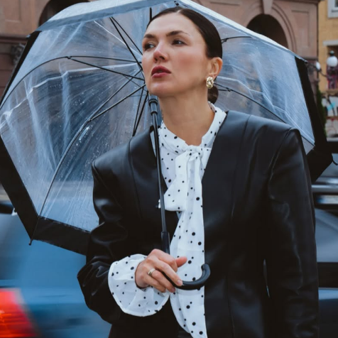Блуза прямого вільного крою із принтом у дрібний горох. У плечах передбачені м'які вставки для збереження ліній. Модель із коміром-стійкою, що зав'язується на бант. Заокруглений подол дозволяє по-різному стилізувати блузу