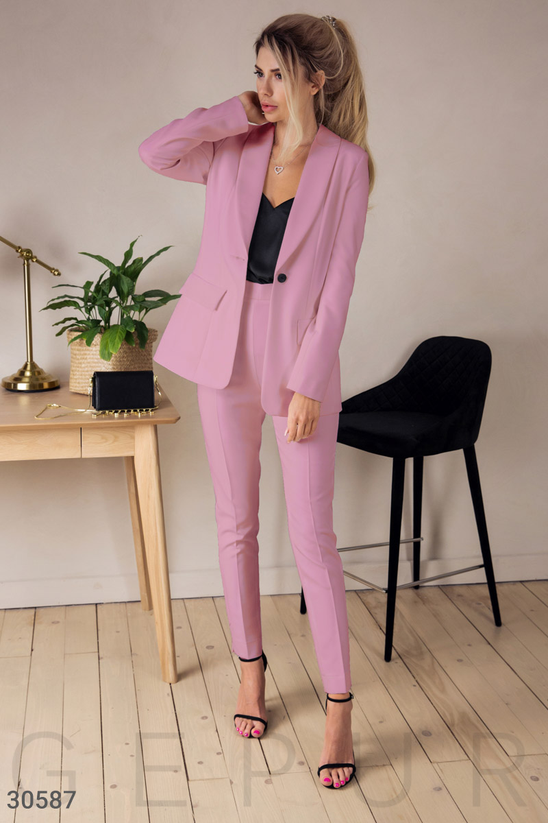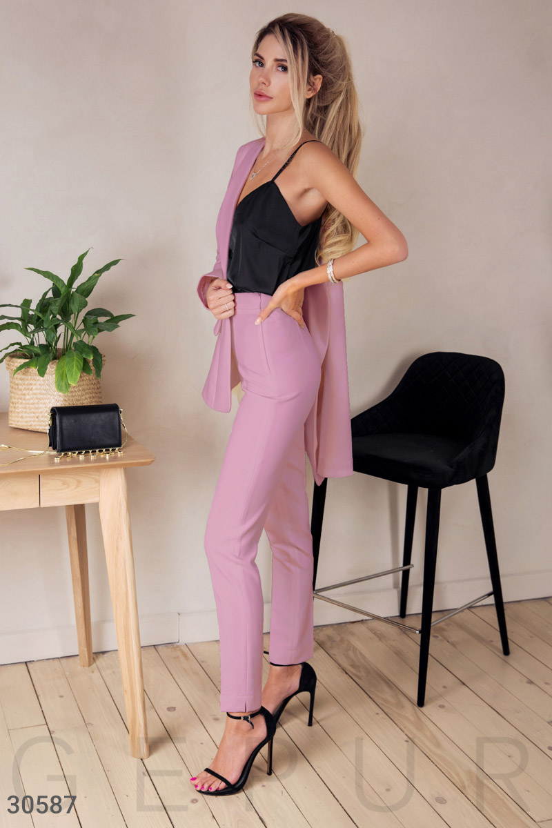 Брала эти брюки с таким же пиджаком.Девочки, это просто бомба! Цвет немного не такой пастельный как на фото, более яркий, получается ярко-светло-розовый. Мои параметры 90-70-98. Брала и брюки и пиджак М-ку. Все подошло как раз. Ни больше ни меньше...Детальніше