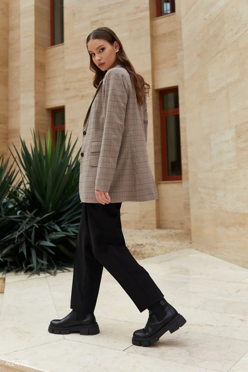 Класичні штани на кожен день – база у вашому гардеробі. Злегка вкорочені та звужені до низу. Доповнили бічними кишенями та подвійними защипами. Виконали із сумішової костюмної тканини - фактурна та еластична. Штучні волокна відповідають за довговічність та збереження форми. Застібається на блискавку та гудзик.