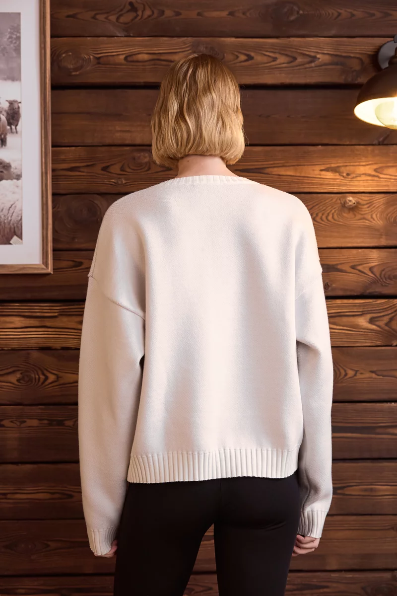 Джемпер зробить будь-який образ стильним та затишним. Модель стилізована унікальним гірськолижним принтом. М'яка, приємна гладка пряжа з перевагою бавовни у складі зігріватиме тебе у холодний період