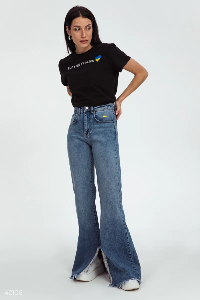 Гарна патріотична футболка з бавовни, не "в обліпку", чудово пасує під джинси-моми.