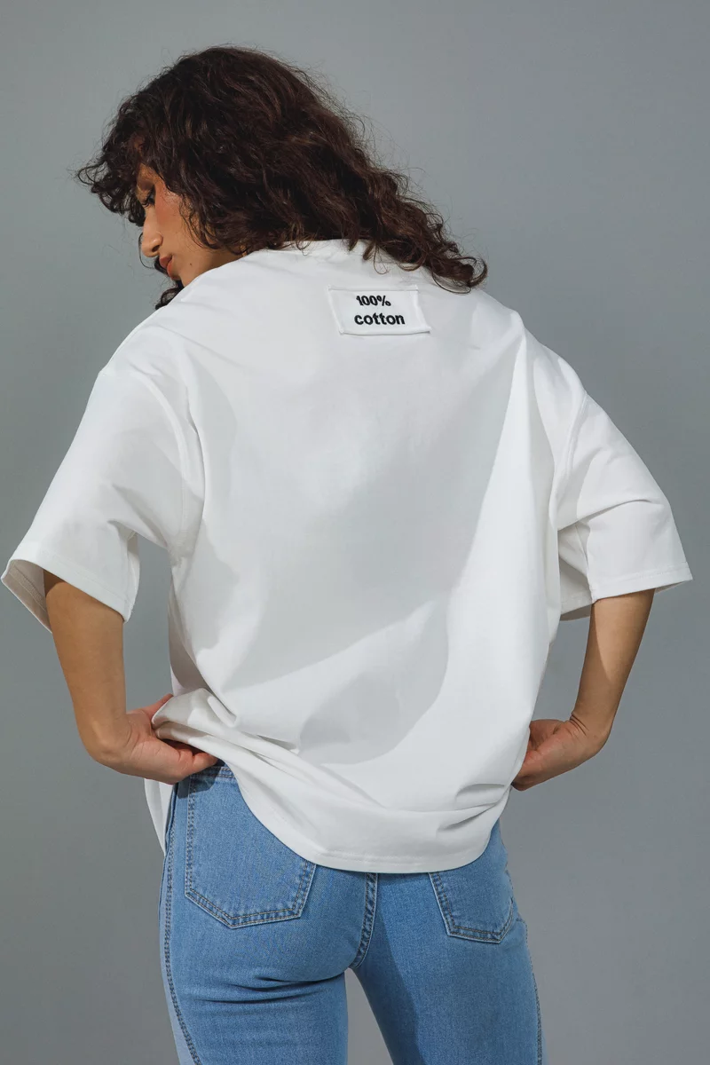 Молочна футболка оверсайз з чайкою