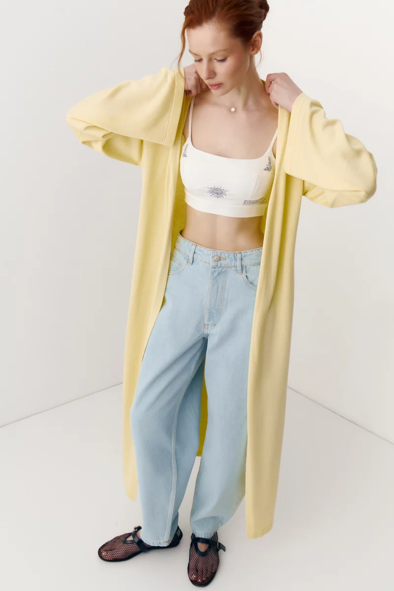 Жовтий трикотажний кардиган прямого крою