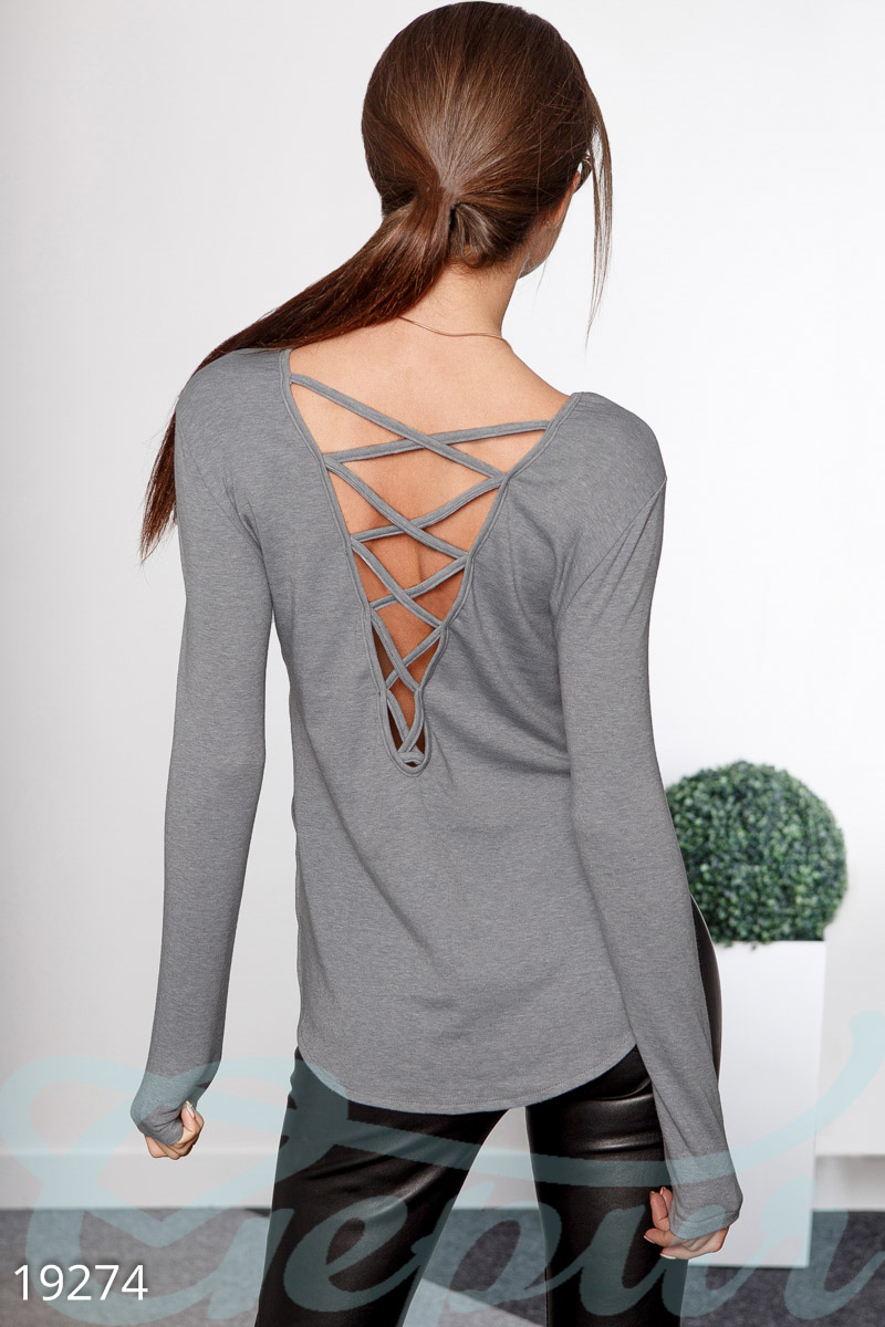 Необычный свитшот с имитацией шнуровки на спинке станет отличным дополнением вашего стильного образа. Выполнен из мягкой ткани с теплым начесом с изнаночной стороны и асимметричным кроем. Его можно сочетать с леггинсами, джинсами или расклешенными юбками.
