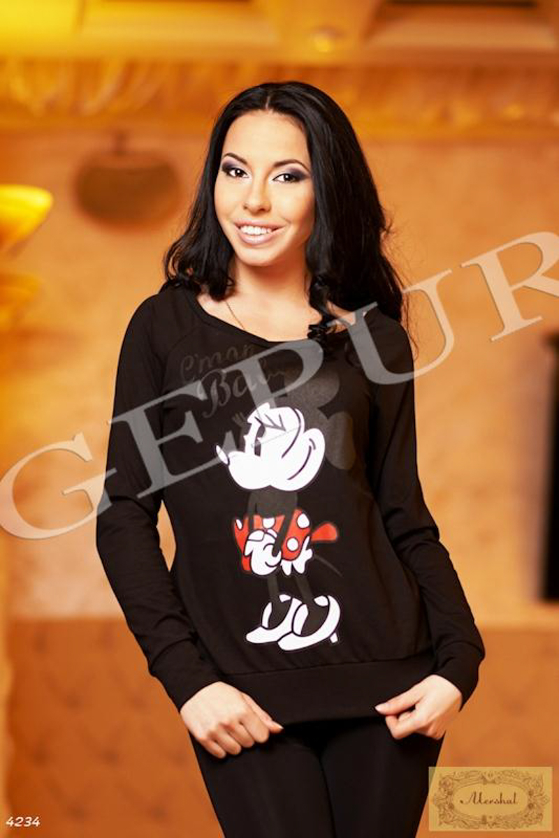 Классная кофточка, обожаю такие игривые «подростковые» модельки. На параметры 83-62-89 заказали М-ку, только потому что клиентка хотела, чтобы село очень свободно. А так идет в размер. Носится отлично, рисунок не полинял, после стирки не потерся