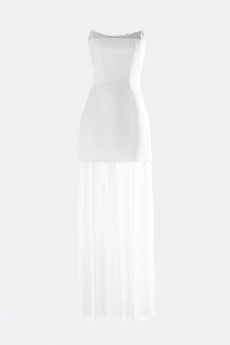 Комплект із сатинової сукні міні і довгої спідниці із сітки. Сукня добре тримає форму, на сатиновій підкладці. Застібається на приховану блискавку ззаду. Сукню та спідницю можна носити окремо