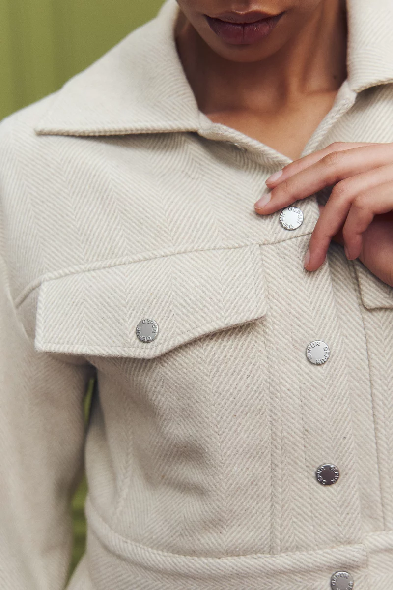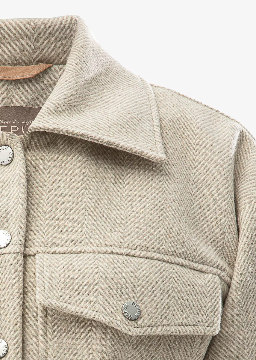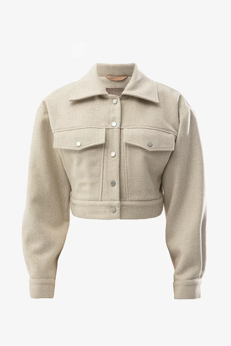 Кроп-куртка прямого крою із пальтової тканини з додаванням вовни. Щільна і дуже комфортна тканина, що формує ідеальний силует, тримає форму, додає образу структурованості та дарує тепло у прохолодні дні