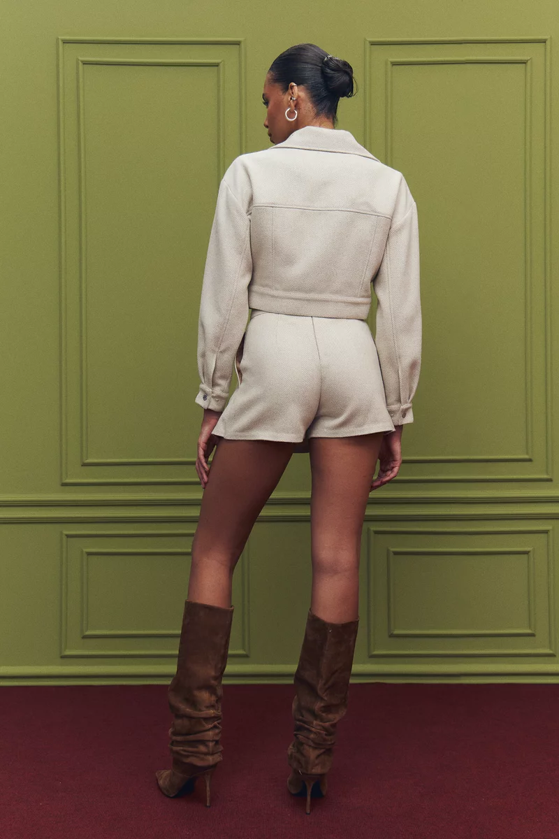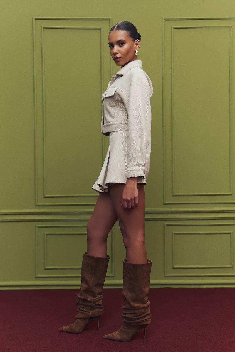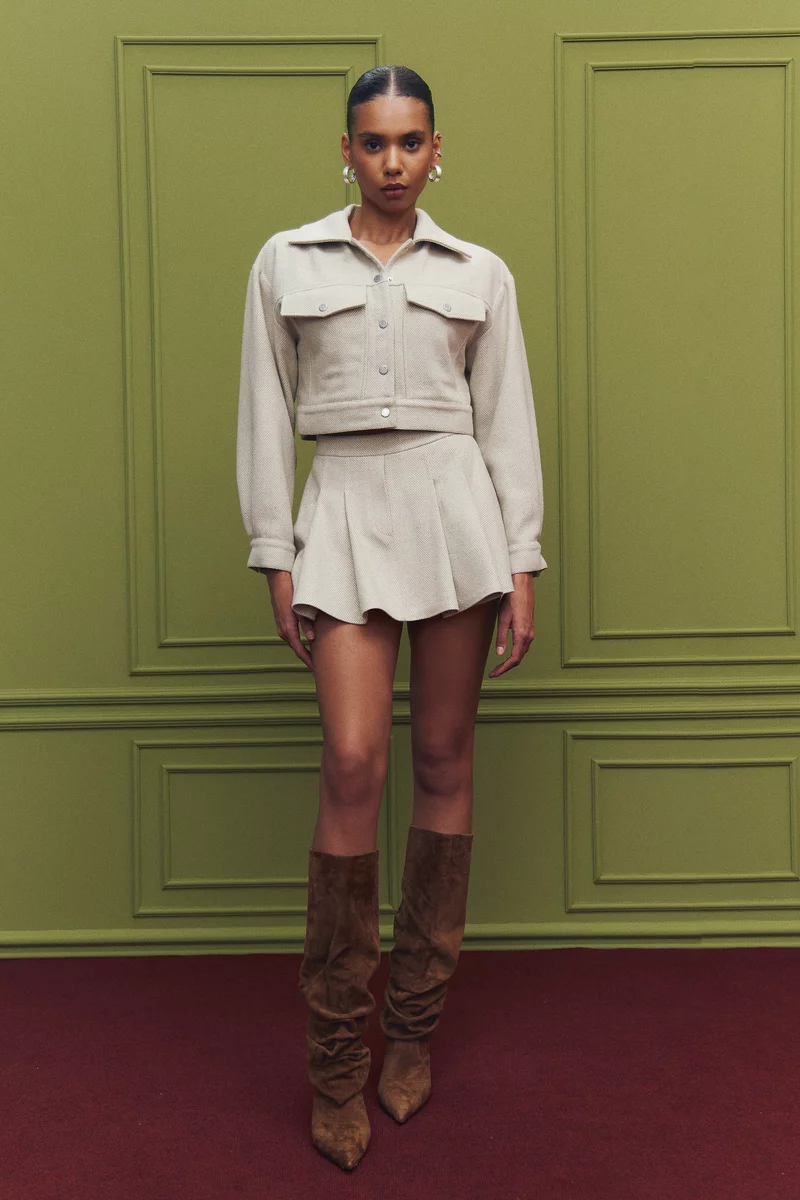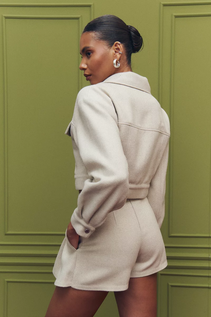 Кроп-куртка прямого крою із пальтової тканини з додаванням вовни. Щільна і дуже комфортна тканина, що формує ідеальний силует, тримає форму, додає образу структурованості та дарує тепло у прохолодні дні