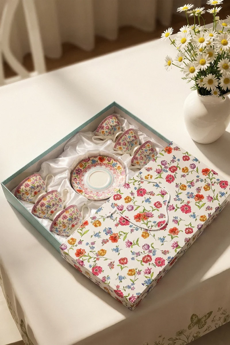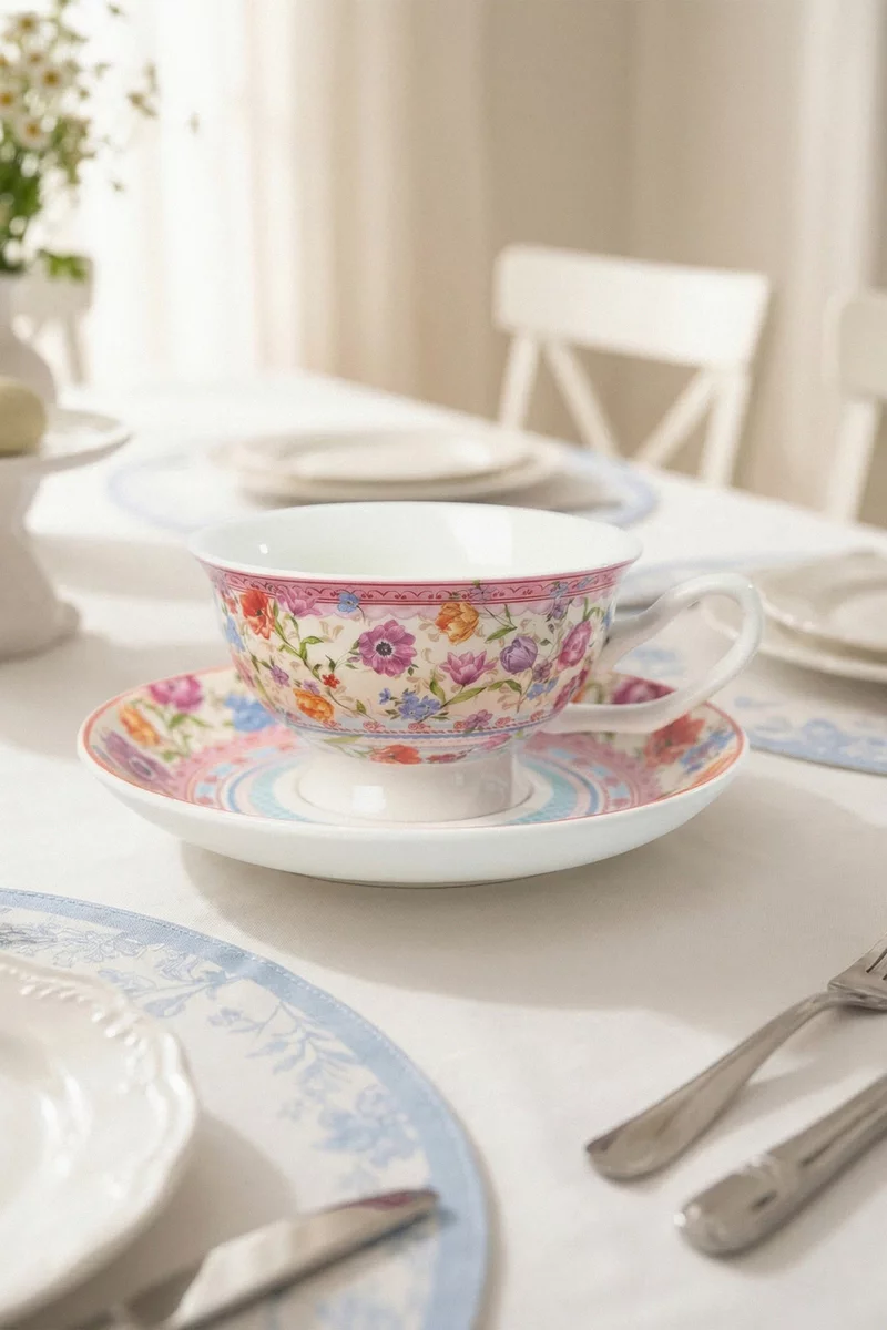 Фарфоровий набір із 6 чашок з блюдцями з квітковим декором додасть естетики та завершеності сервіруванню. Чашка 180 мл