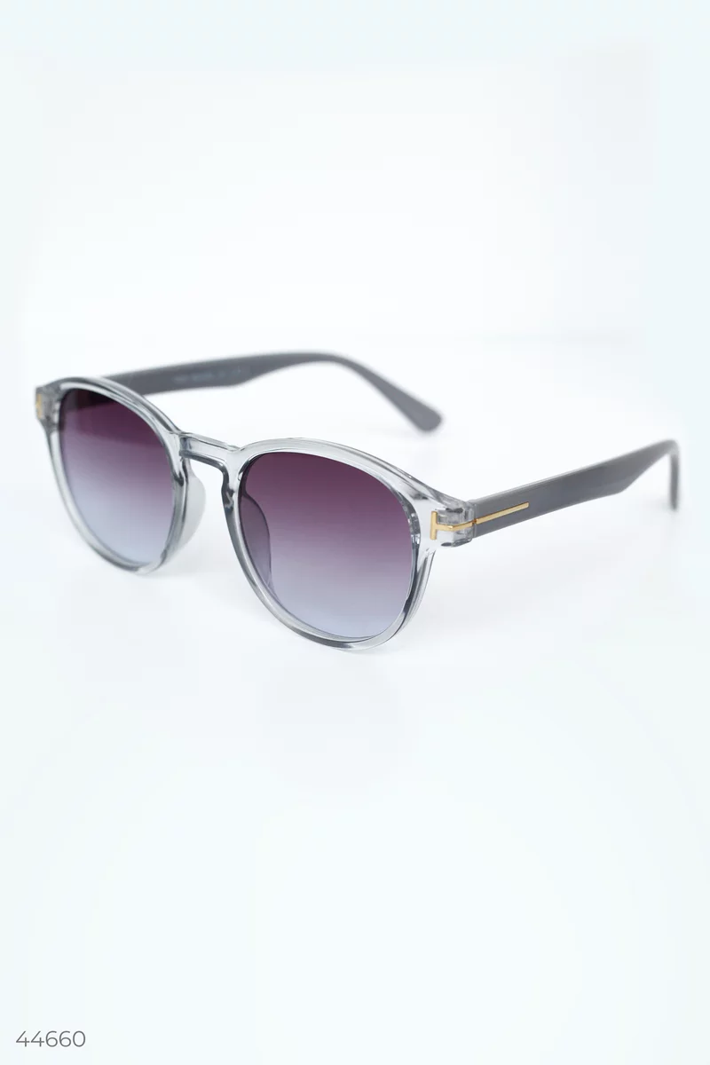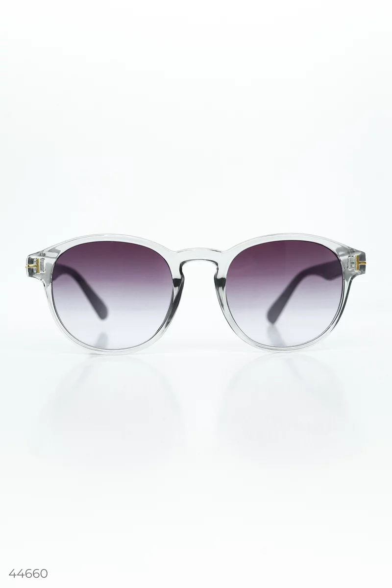 Сонцезахисні окуляри, матеріал оправи - пластик, нерухоме перенісся, матеріал лінзи - пластик, тип - круглий, тонування - градієнт.