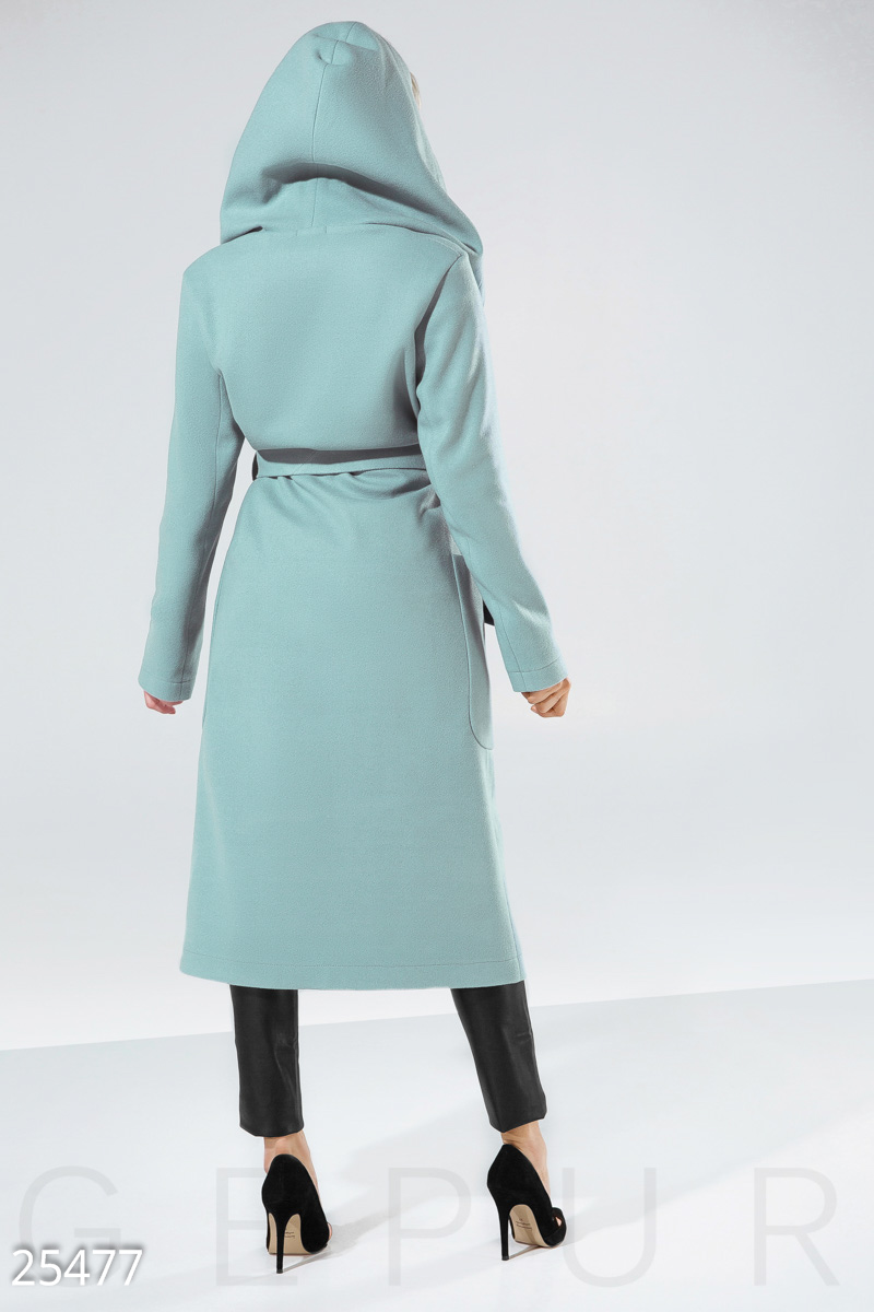 Демисезонное пальто от дизайнеров Gepur, выполненное из пальтовой ткани premium класса: удобный капюшон, два больших накладных кармана и съемный пояс в тон.