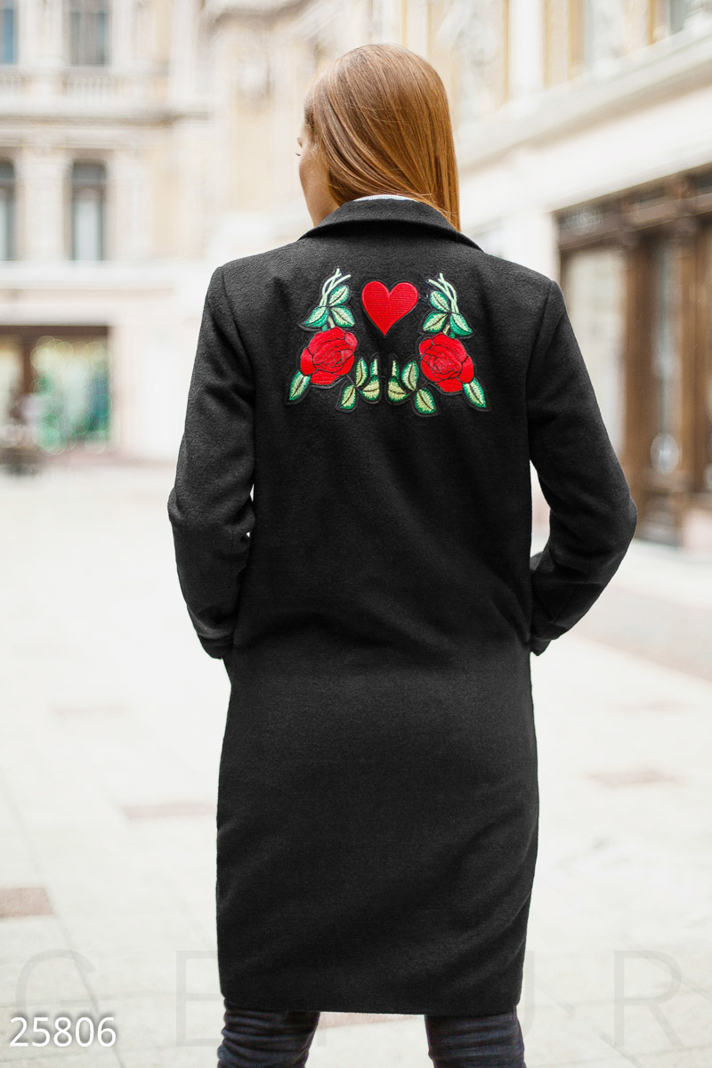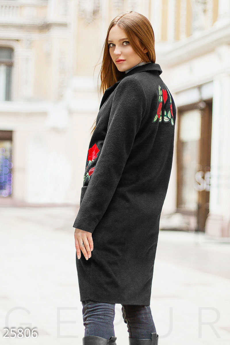 Пальто просто смотрится очень хорошо. Эффектная вышивка в виде цветка, который "растет" из кармана. Идет четко в размер. Не очень нравится вышивка на спине, но под волосами не видно. Ношу пальто уже 2 сезона.