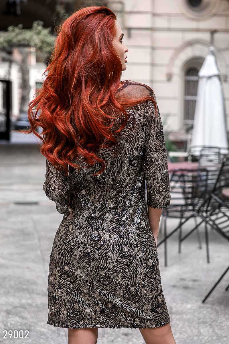 Стильное вечернее платье с рукавом 3/4, расшитое пайетками.