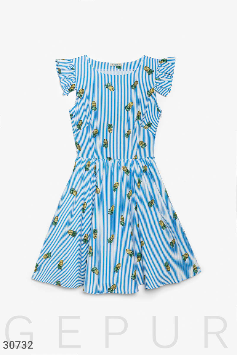Стильна сукня а-силуету, доповнене ремінцем з еко-шкіри і принтом в дрібну смужку, від дизайнерів Gepur: короткі-рукави-крильця, виріз, відрізна талія та спідниця-напівсонце в легку складку.