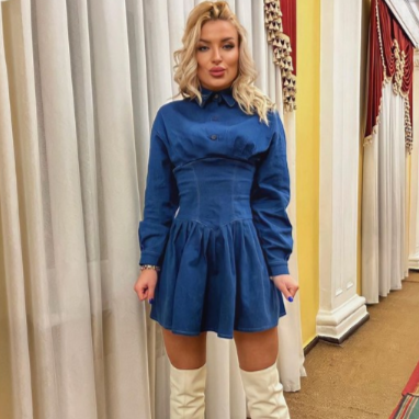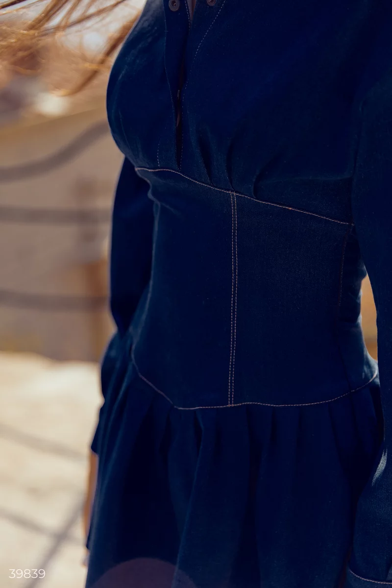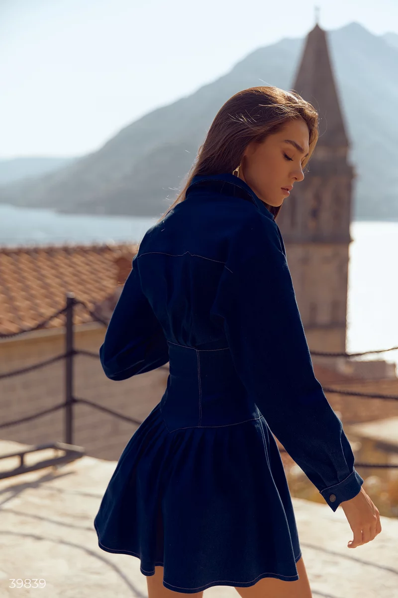 Сукня міні виконана з джинсового матеріалу з переважною бавовною у складі. Дизайнери Gepur стилізували його втачним корсетом, який акцентує талію, а розслабленості образу додає вільна спідниця. Створіть трендовий образ, обравши актуальні черевики-козаки та пальта oversize.