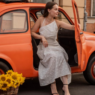 Дуже гарна сукня. Я маленького зросту, то трішечки укоротила довжину.