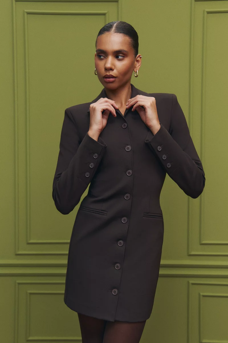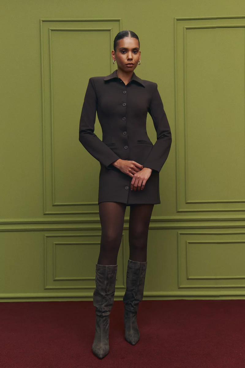 Сукня міні із приємної до тіла трикотажної тканини. Модель з підкресленою талією. Застібається на гудзики спереду