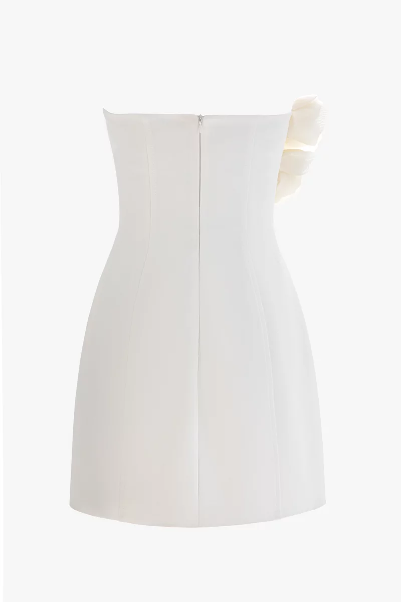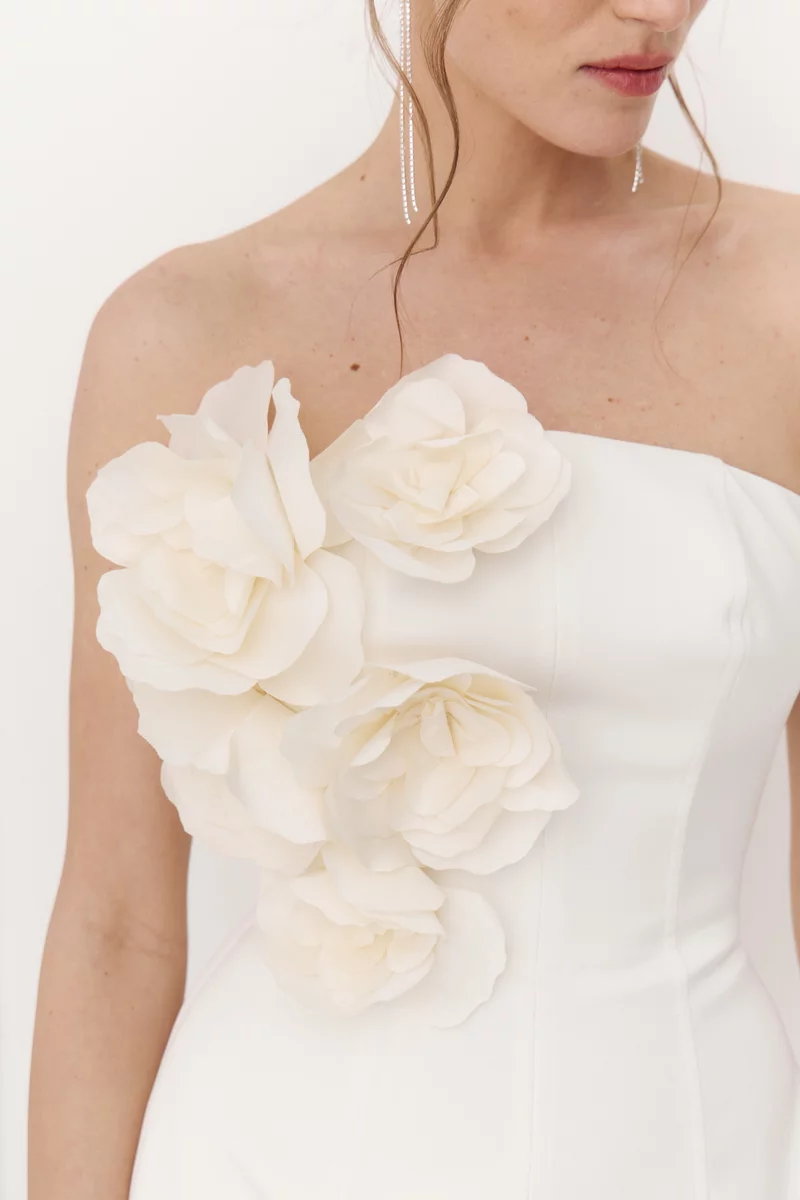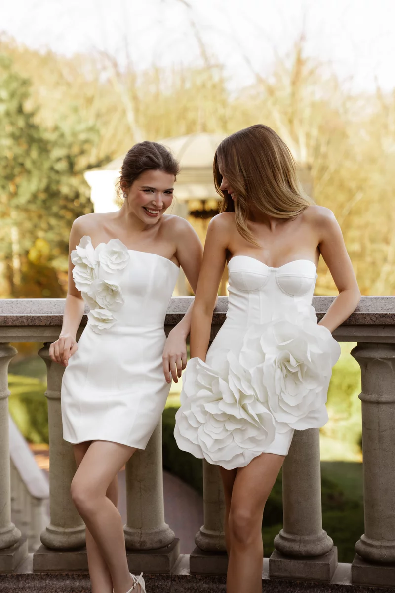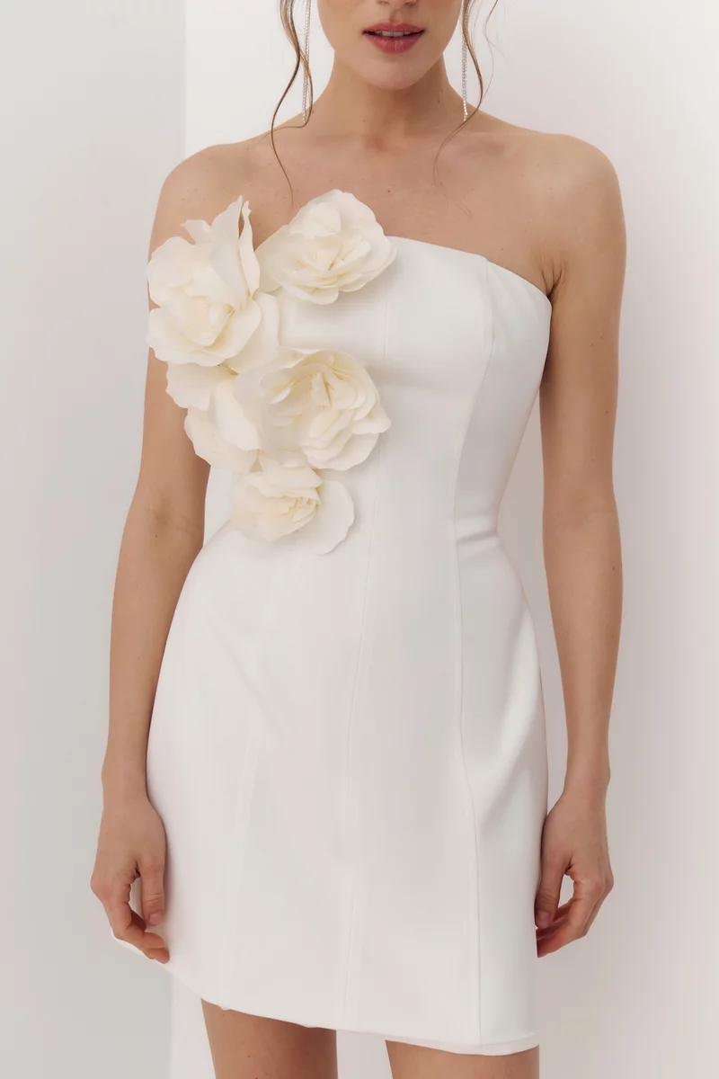Сукня міні із гладкого і сяючого сатину, який ніби пелюстка камелії ідеально віддзеркалює світло та ніжно ковзає по тілу, повторюючи кожен твій рух із бездоганною грацією. Ліф із чашками на кісточках та підкреслена талія моделюють витончений силует. Застібається на приховану блискавку ззаду. На підкладці