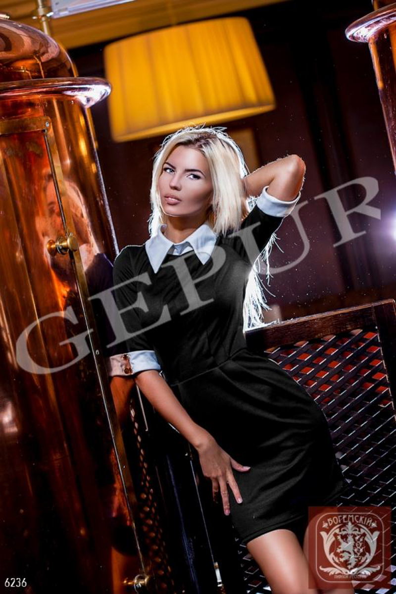 Платье Бекхем(Victoria Beckham) с белым воротничком и манжетами Материал: французский трикотаж стрейч Длина: 81см,рукав три-четверти Цвет: черный,вставки- белый