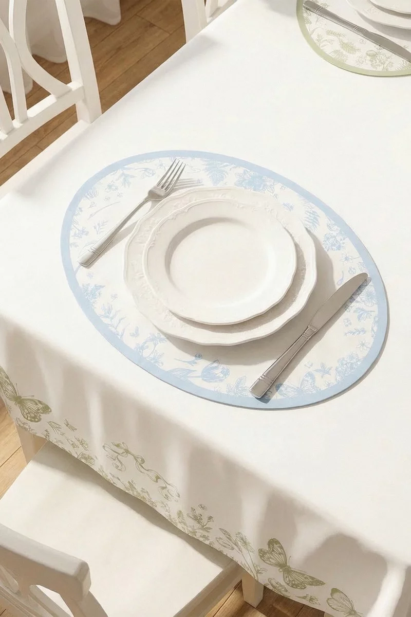 Блакитний двосторонній плейсмат зі святковим принтом 35х50 см